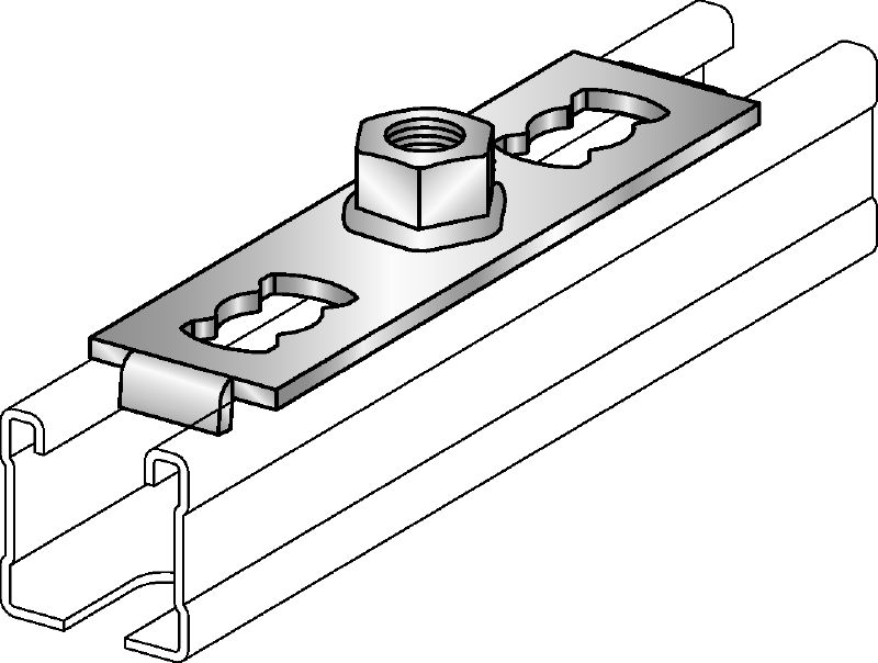Nerūdijančiojo plieno pagrindo plokštė, skirta prijungti srieginius komponentus prie MQ statramsčių bėgelių