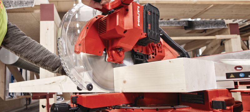 Dvigubo nuožulnaus slydimo įžambinis pjūklas su kryžminio pjovimo talpa iki 100x355 mm│×4 x 13-3/4" (Nuron akumuliatoriaus platforma)